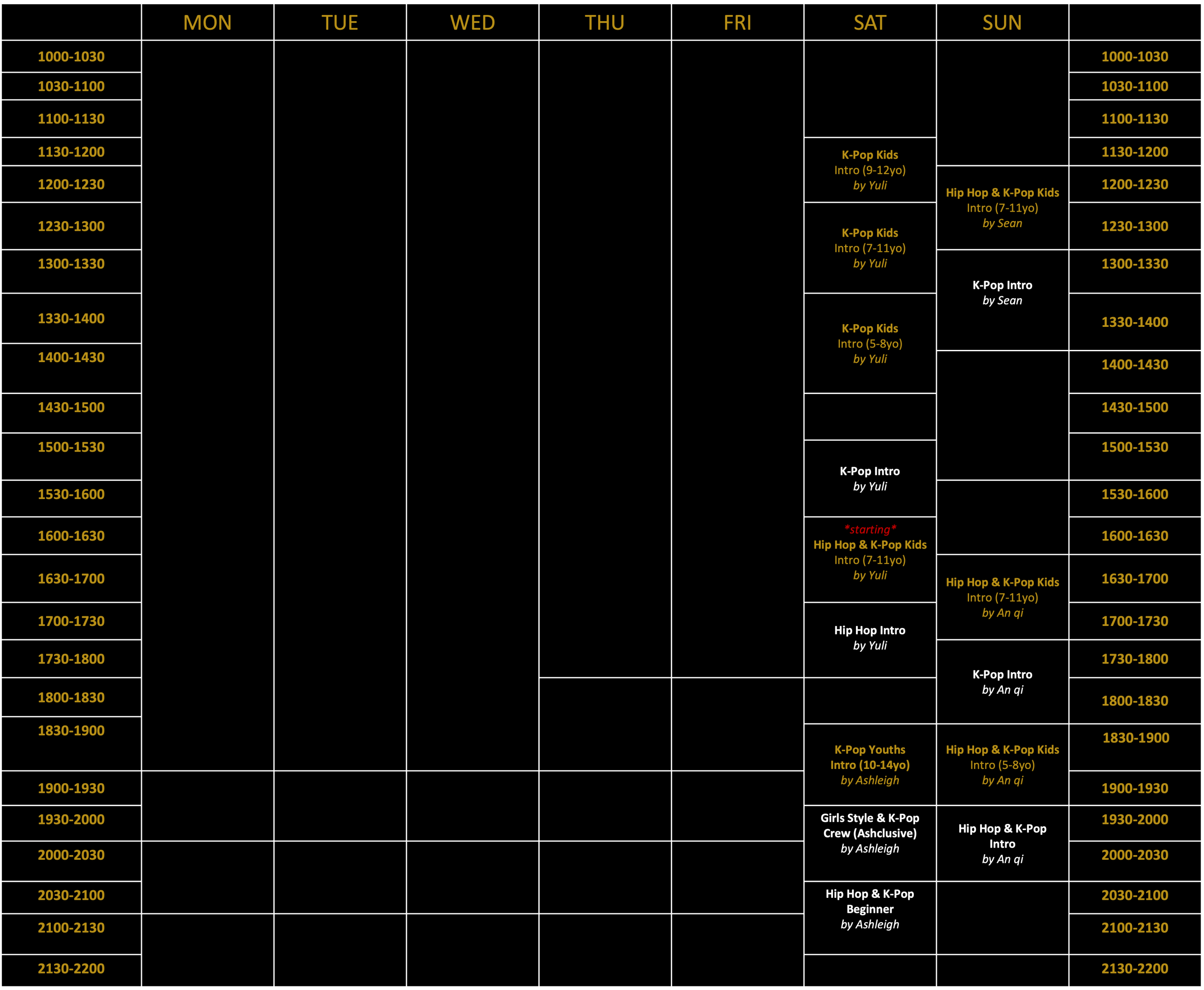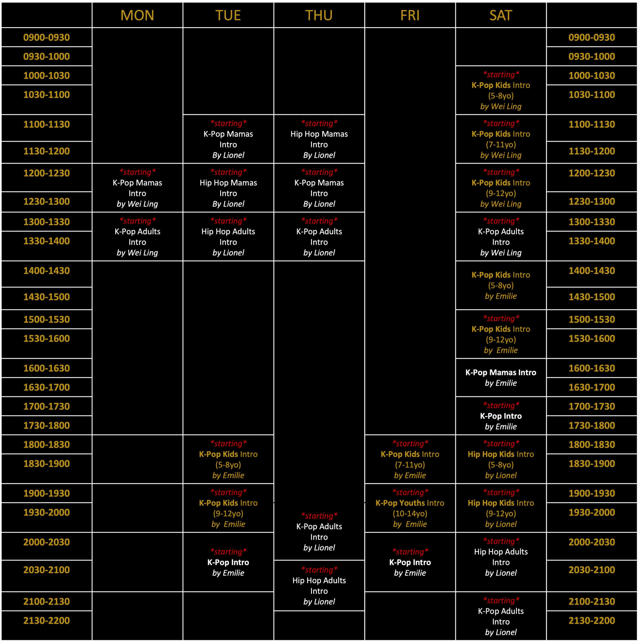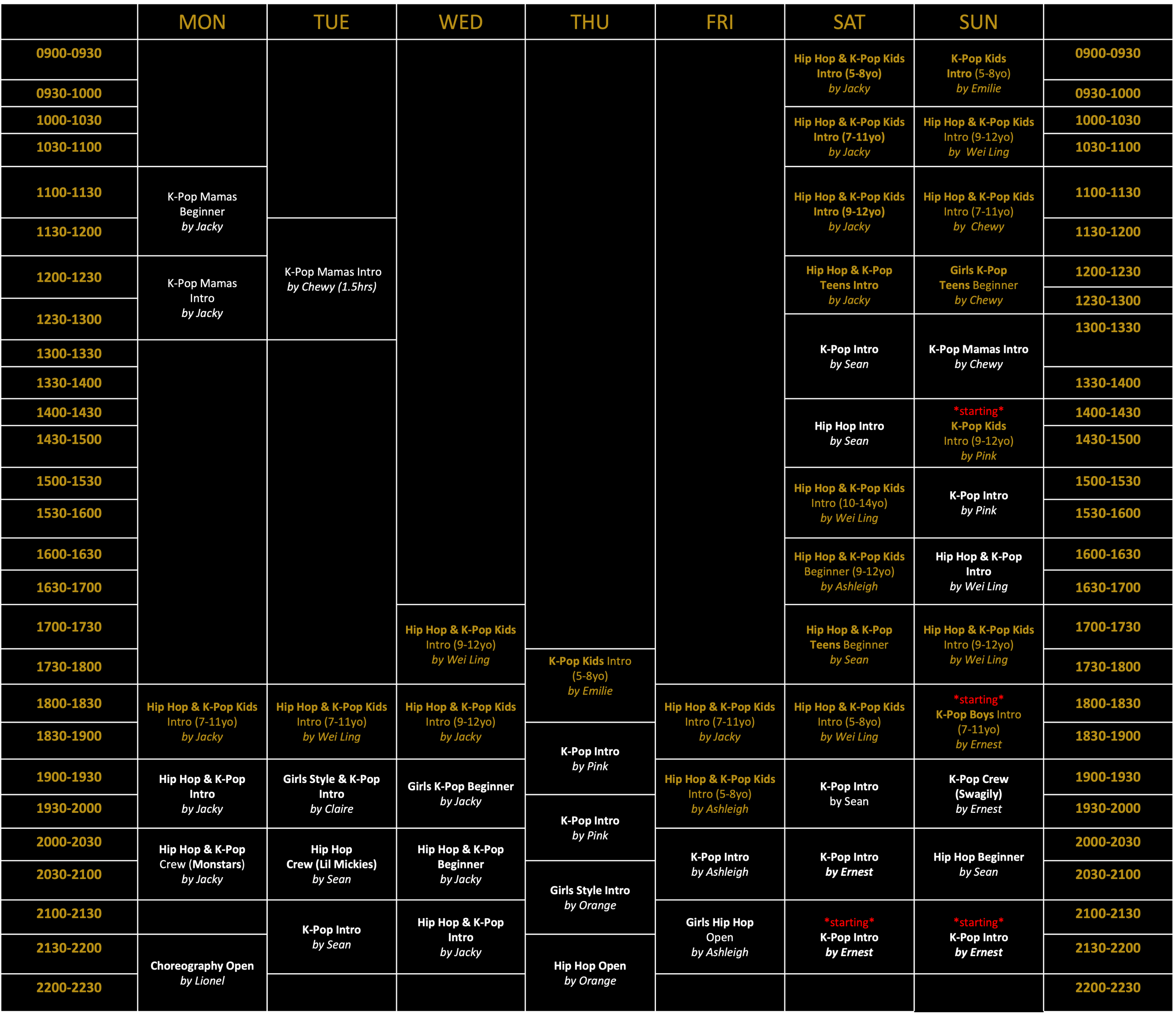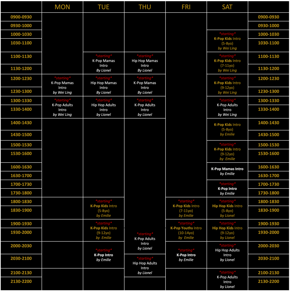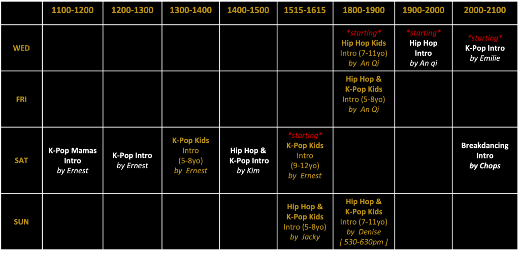 Our Hip-Hop and K-Pop Dance Cover kid, teen and adult students in our school’s performing classes will be taught a long routine over the weeks, injecting formations and polishing steps, and then perform in our public showcases and theatre concerts.